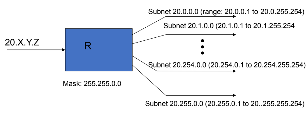 • Example: 20.X.Y.Z is routed to a gateway that handles network 20, regardless of X.Y.Z . As explained before, X.Y.Z represent the particular host within this class A network.