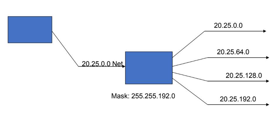 • 20.25.192.0 – corresponds to all hosts whose third byte address lies between 1100 0000 to 1111 1111